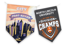 With heavy duty stock and pennant style, durable pennant banners are ideal for outdoor use. These banners feature grommeted corners and heat welded edges, and include rope for hanging display.