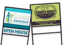 A durable twist on the classic yard sign, full color metal yard signs bring together durable metal stock, versatile full color print, and a heavy duty sign stand. Metallic stock makes these signs appropriate for long-term use.